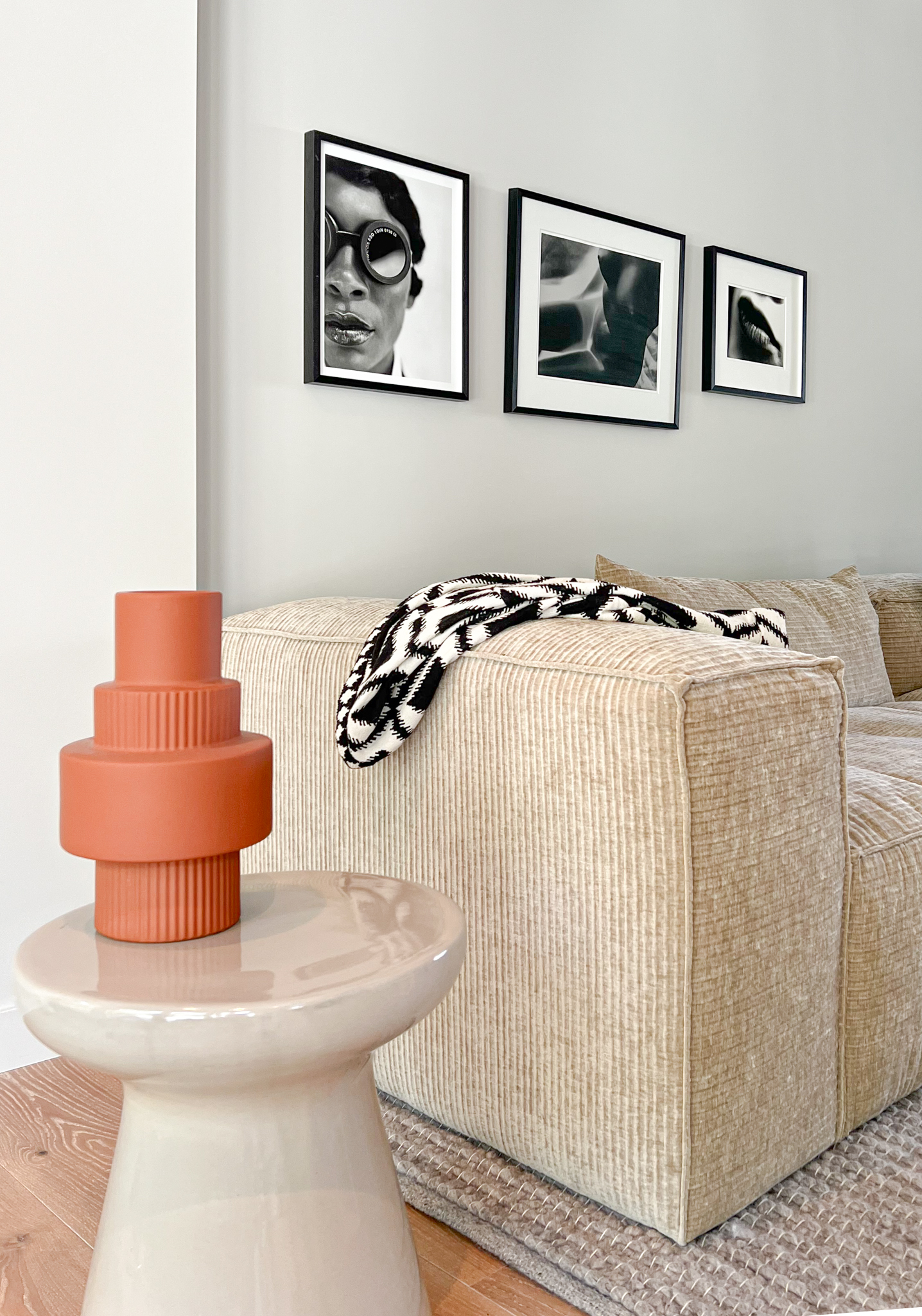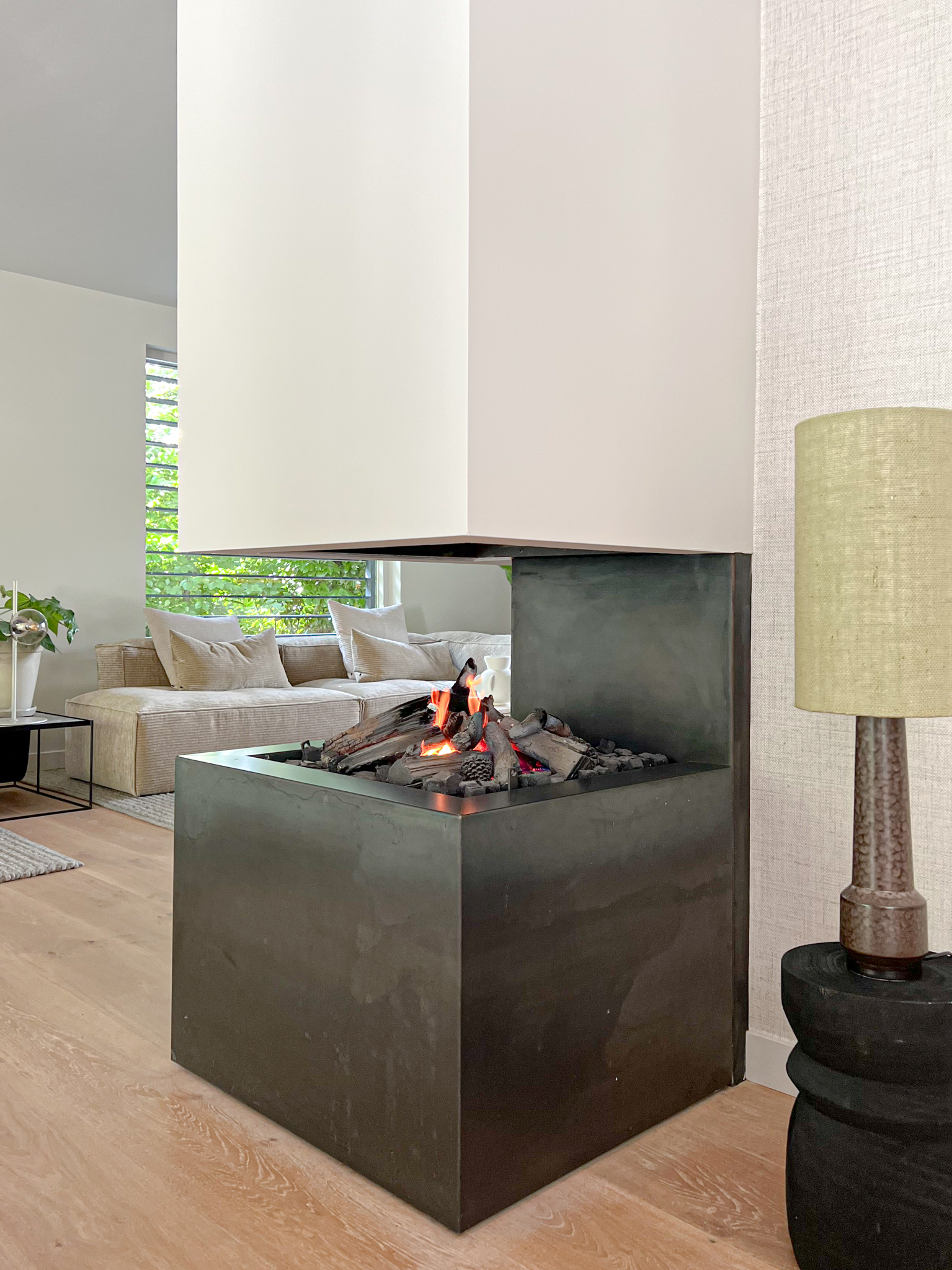 Bij binnenkomst vallen direct de twee prachtige Scandinavische banken op, strategisch geplaatst in het verlengde van elkaar. Dit benadrukt de ambiance van een hotel lobby en biedt diverse functionele ruimtes: van ontspannen tv-kijken en gezellig borrelen met vrienden, tot rustig lezen.